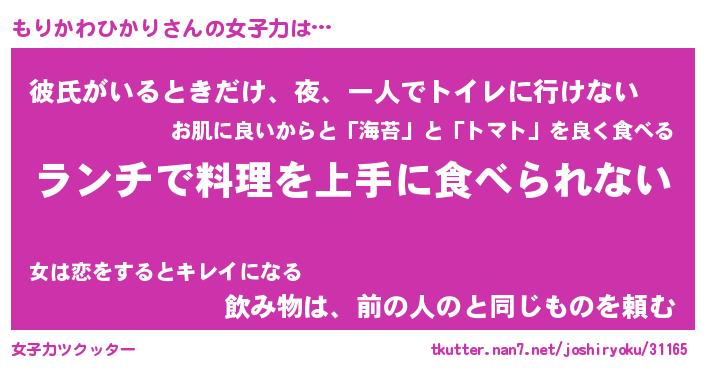 | ヘコむあだ名 | 『もりっふぃ~』『豆乳』『もりを』 |