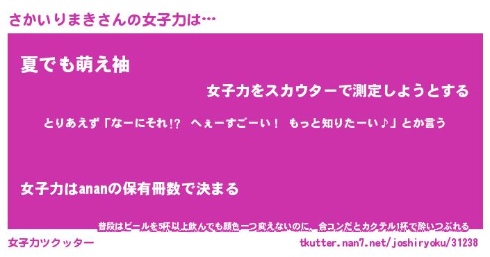 | 恥ずかしいあだ名 | 『プリティーさかいりまき』『さかっちょ』 |
