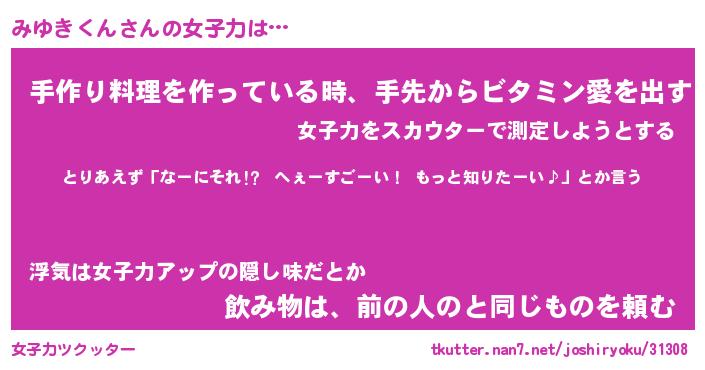 | ヘコむあだ名 | 『みゆにゅー』『つくし』『みゆを』 |
