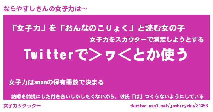 | ヘコむあだ名 | 『ならにー』『牛乳』『ならっ子』 |