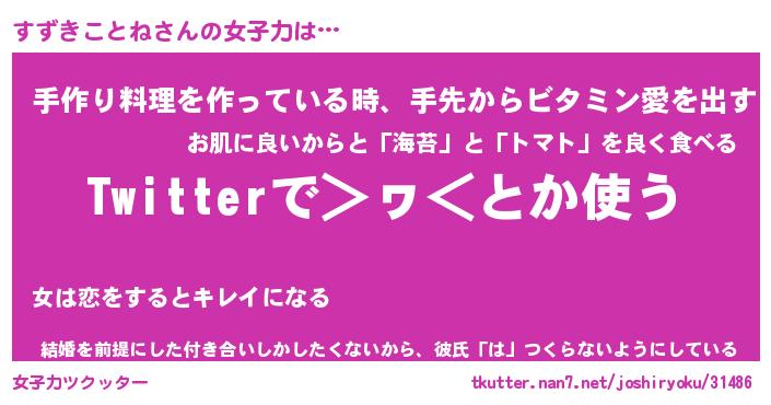 | 恥ずかしいあだ名 | 『プリティーすずきことね』『すずっちょ』 |
