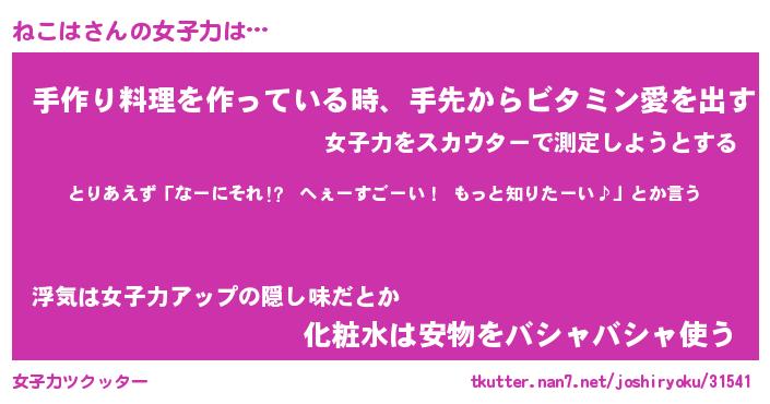 | ヘコむあだ名 | 『ねこっふぃ~』『牛乳』『ねこ太郎』 |
