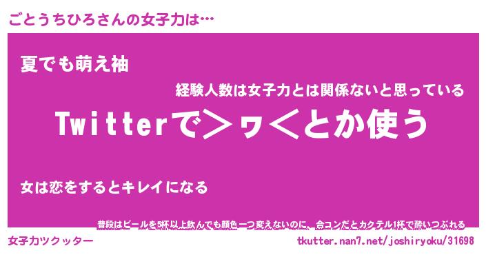 | ヘコむあだ名 | 『ごとにー』『なまこ酢』『ごと太郎』 |
