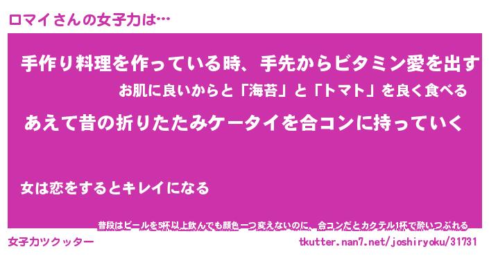 | ファンタジー風あだ名 | 『ロマフェル』『エターナルロマイー』 |