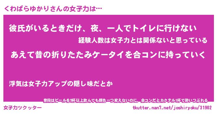 | ヘコむあだ名 | 『くわっふぃ~』『豆乳』『くわっぺ』 |