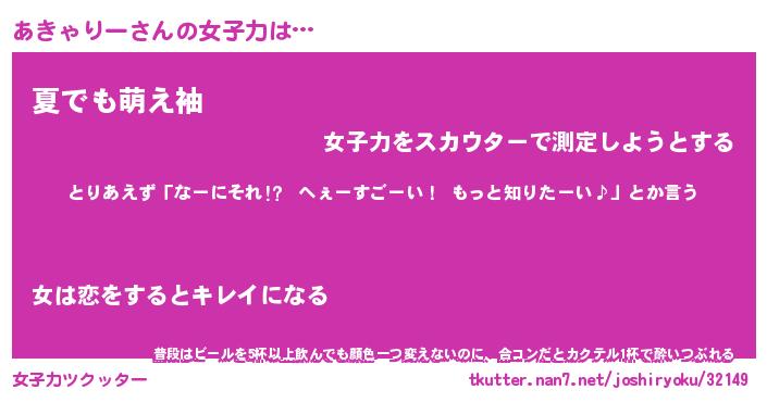 | 恥ずかしいあだ名 | 『プリティーあきゃりー』『あきっちょ』 |
