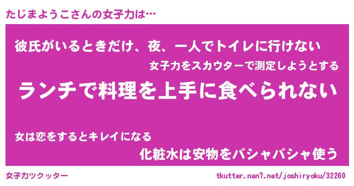 | ヘコむあだ名 | 『たじっふぃ~』『なまこ酢』 |