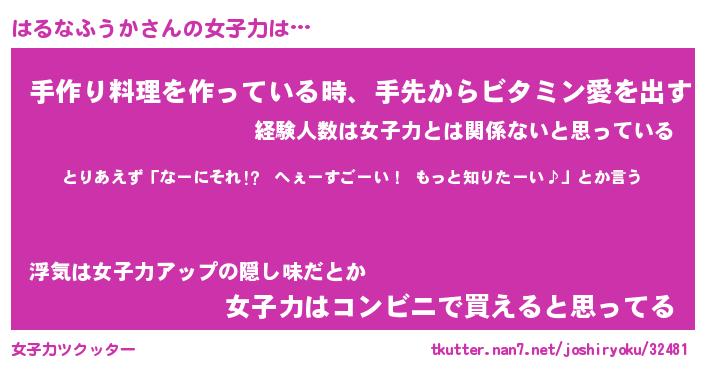 | 胡散臭い通販商品みたいなあだ名 | 『モテモテ間違いなし水晶球…その名も「はるなふうか」』 |