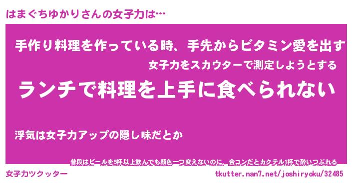 | 胡散臭い通販商品みたいなあだ名 | 『億万長者になれるブレスレット…その名も「はまぐちゆかり」』 |