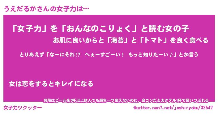 | 恥ずかしいあだ名 | 『プリティーうえだるか』『うえっちょ』 |