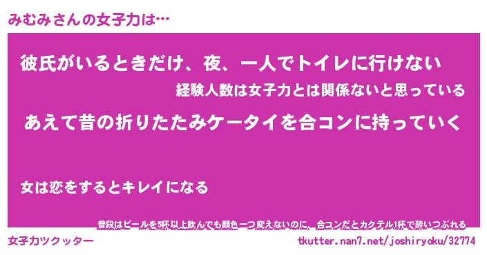 | ヘコむあだ名 | 『みむにー』『つくし』『みむっ子』 |
