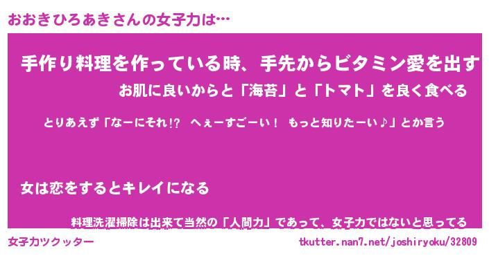 | 恥ずかしいあだ名 | 『プリティーおおきひろあき』『おおちん』 |