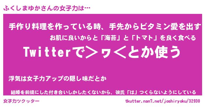 | 恥ずかしいあだ名 | 『プリティーふくしまゆか』『ふくっちょ』 |