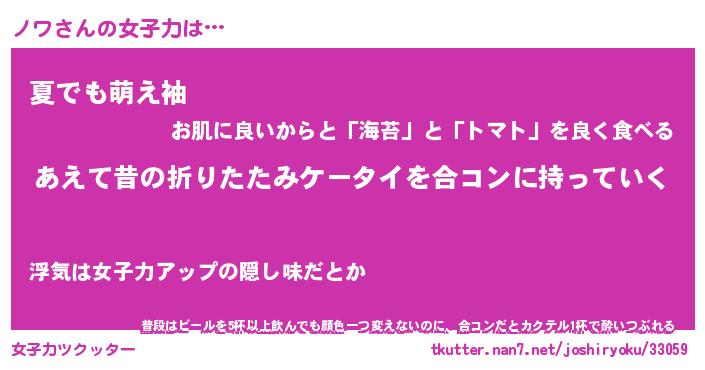 | ヘコむあだ名 | 『ノワっふぃ~』『酢こんぶ』 |