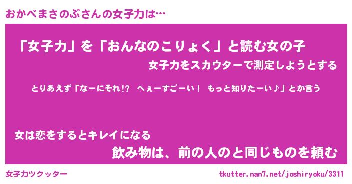 | 肩書あだ名 | 『おかべまさのぶ社長令嬢』 |