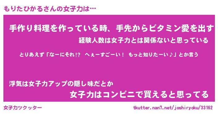 | ヒーロー風カッコイイあだ名 | 『スーパーモリタヒカル』『天弓騎士モリ』 |