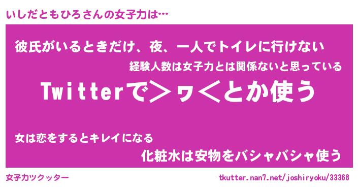 | ヘコむあだ名 | 『いしにゅー』『豆乳』『いしっちょ』 |