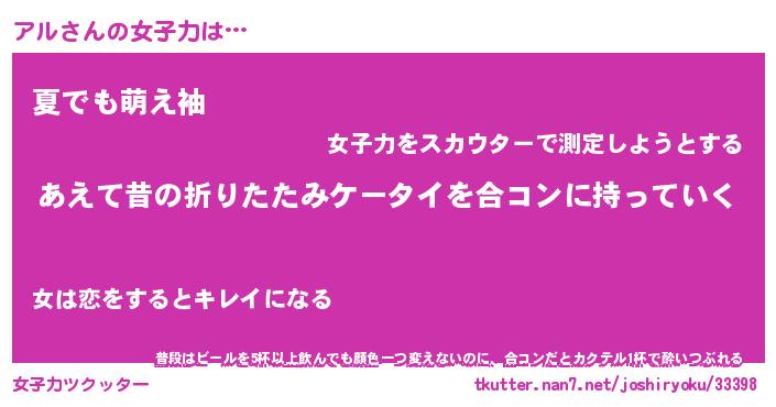 | ヘコむあだ名 | 『アルふぇ~』『なまこ酢』 |