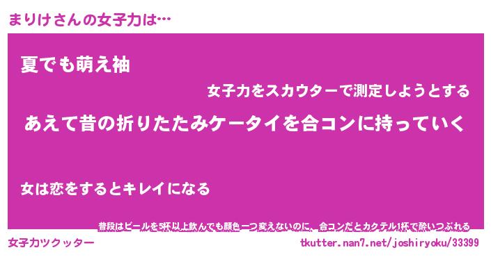 | 恥ずかしいあだ名 | 『プリティーまりけ』『まりっちょ』 |