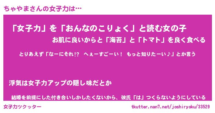 | ヘコむあだ名 | 『ちゃにゅー』『なまこ酢』『ちゃを』 |