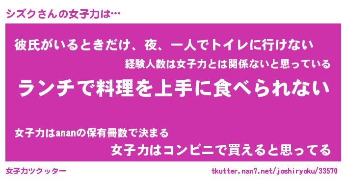 | ヘコむあだ名 | 『シズっふぃ~』『牛乳』『シズっ子』 |