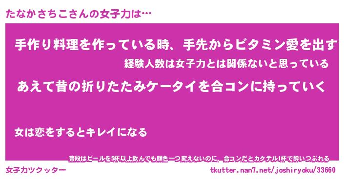| 恥ずかしいあだ名 | 『プリティーたなかさちこ』『たなっちょ』 |