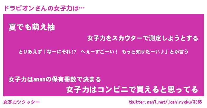 | ヘコむあだ名 | 『ドラふぇ~』『なまこ酢』『ドラを』 |