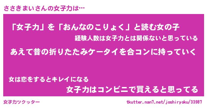 | ファンタジー風あだ名 | 『ササフェル』『エターナルササキマイー』 |