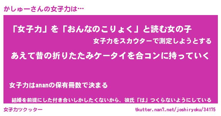| 男性向けラノベタイトル風あだ名 | 『かしゅーの憂鬱』 |