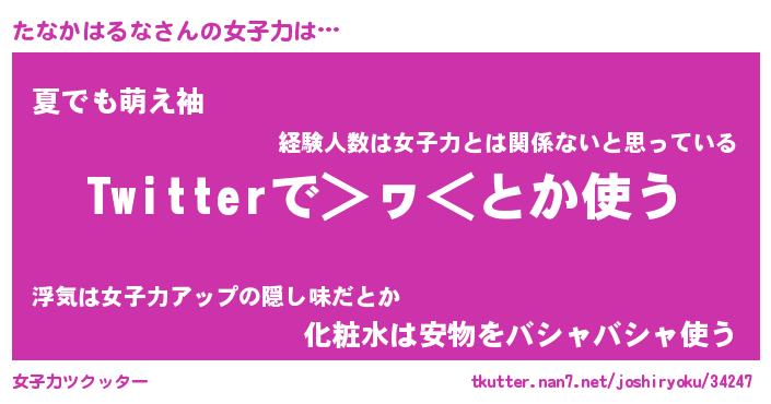 | ヒーロー風カッコイイあだ名 | 『スーパータナカハルナ』『魔戒騎士タナ』 |