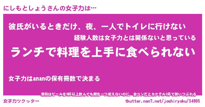 | ヘコむあだ名 | 『にしにゅー』『豆乳』『にしっ子』 |