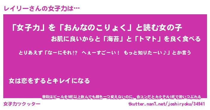 | ヘコむあだ名 | 『レイふぇ~』『なまこ酢』『レイを』 |