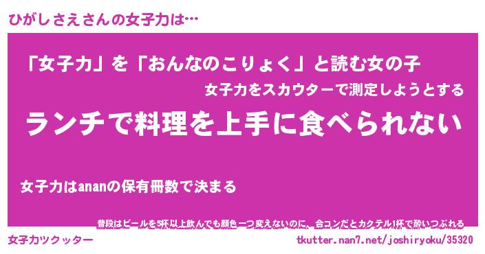 | ファンタジー風あだ名 | 『ヒガフェル』『エターナルヒガシサエー』 |