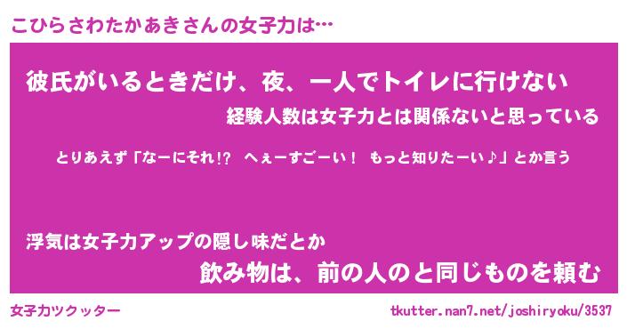 | 女子向けラノベタイトル風あだ名 | 『こひらさわたかあき姫と円卓の騎士』 |