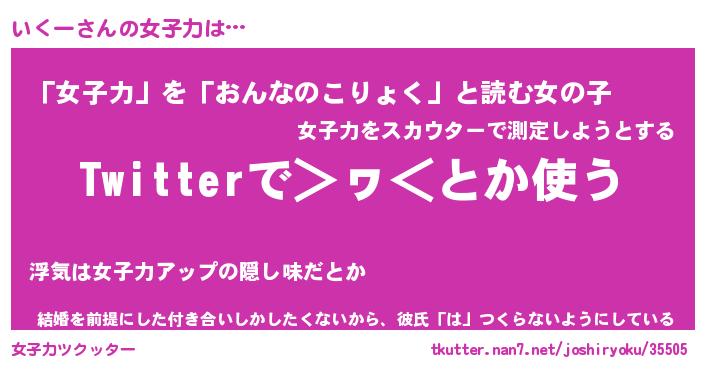 | 男性向けラノベタイトル風あだ名 | 『いくーの憂鬱』 |
