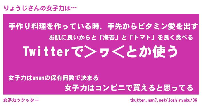 | ファンタジー風あだ名 | 『リョフェル』『エターナルリョウジー』 |