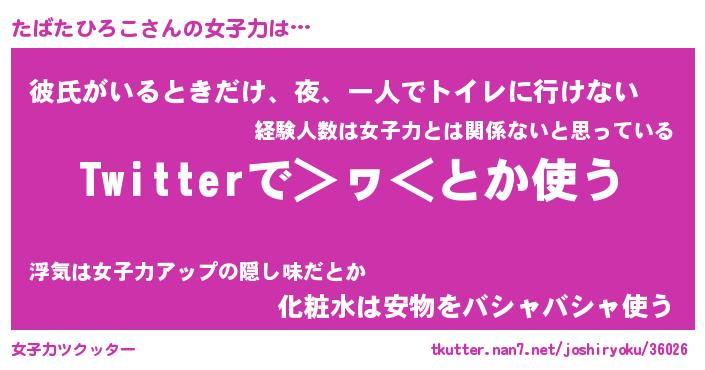| ヒーロー風カッコイイあだ名 | 『スーパータバタヒロコ』『魔戒騎士タバ』 |