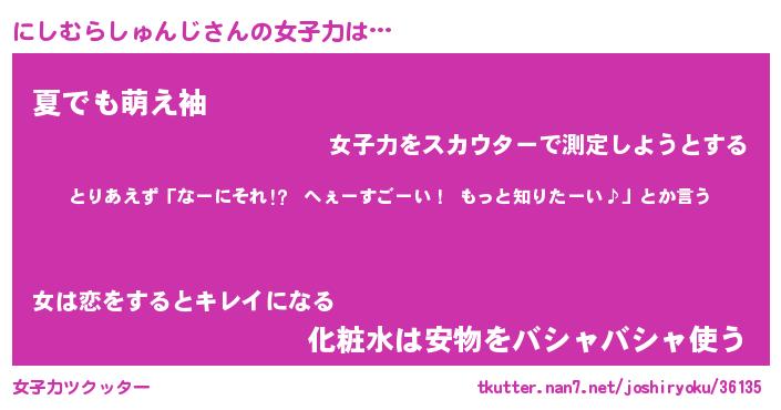 | 肩書あだ名 | 『にしむらしゅんじ御曹司』 |