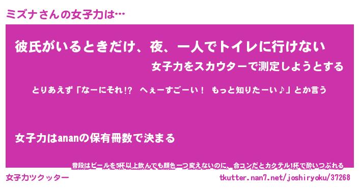 | ヘコむあだ名 | 『ミズにゅー』『牛乳』『ミズぷりん』 |