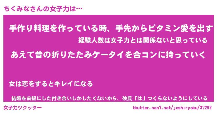 | ヘコむあだ名 | 『ちくふぇ~』『なまこ酢』『ちくを』 |