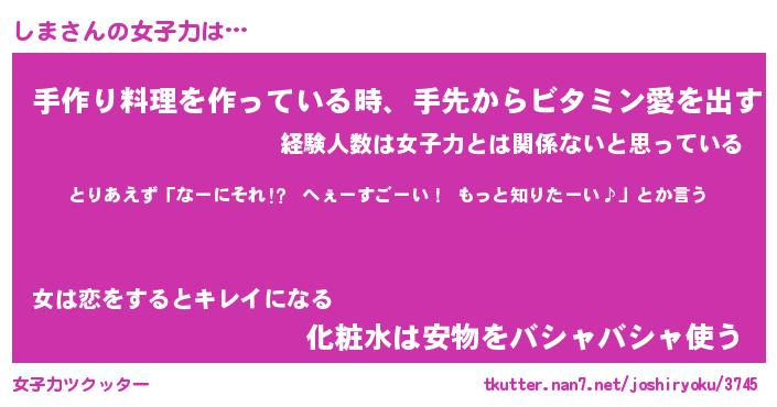 | ヘコむあだ名 | 『しまっふぃ~』『つくし』 |
