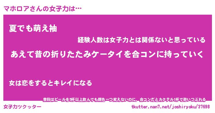 | ヘコむあだ名 | 『マホにー』『つくし』『マホぷりん』 |