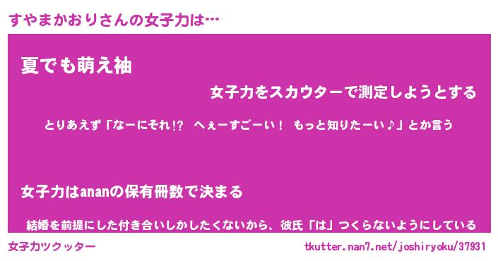 | ヒーロー風カッコイイあだ名 | 『スーパースヤマカオリ』『魔戒騎士スヤ』 |