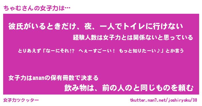| ヘコむあだ名 | 『ちゃにー』『豆乳』『ちゃを』 |