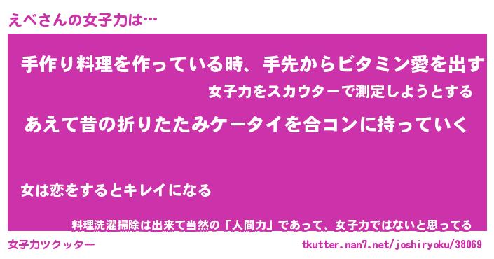 | ヘコむあだ名 | 『えべふぇ~』『つくし』『えべお』 |
