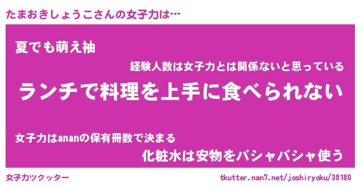 | ヘコむあだ名 | 『たまもー』『なまこ酢』『たまっ子』 |