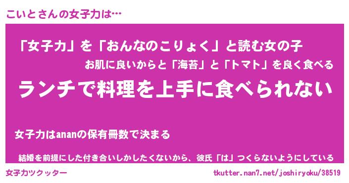 | ヘコむあだ名 | 『こいふぇ~』『なまこ酢』『こいお』 |