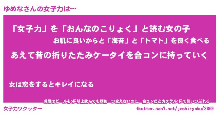 | ヘコむあだ名 | 『ゆめにー』『レバニラ』 |