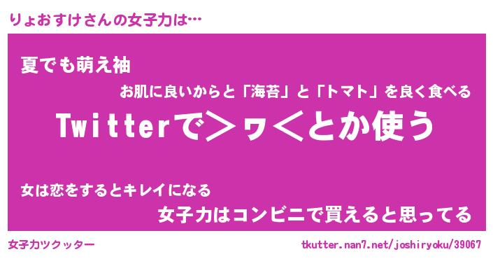 | ファンタジー風あだ名 | 『リョフェル』『エターナルリョオスケー』 |