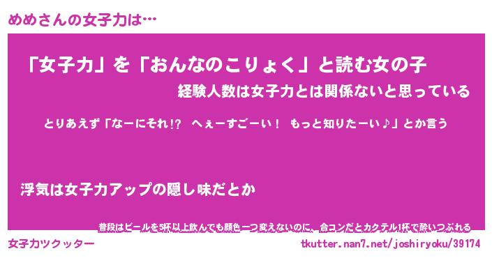 | ファンタジー風あだ名 | 『メメフェル』『エターナルメメー』 |